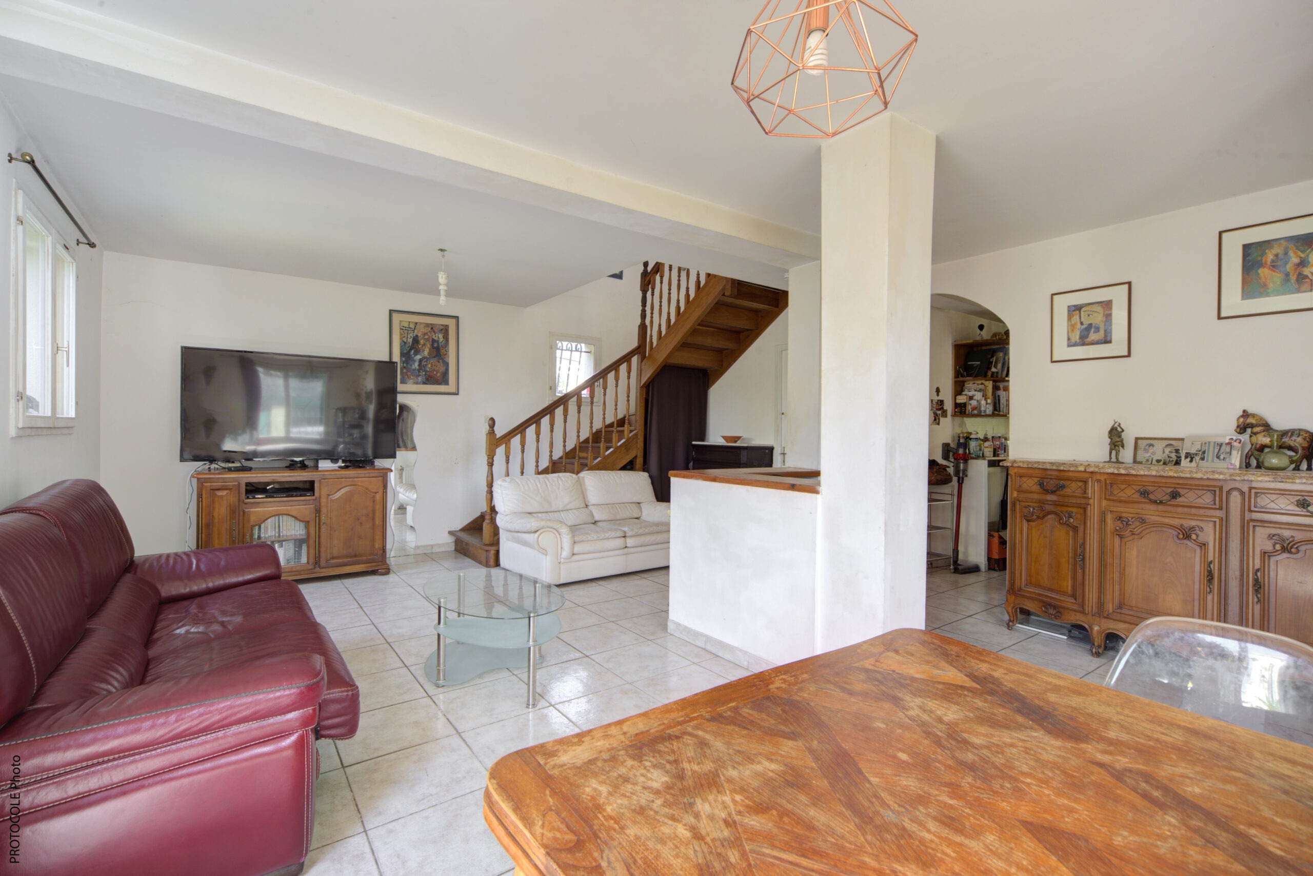 Au rez-de-chaussée, vous trouverez une vaste pièce de vie lumineuse ouvrant sur le jardin, une cuisine semi-ouverte ainsi qu’une chambre pouvant également faire office de bureau.