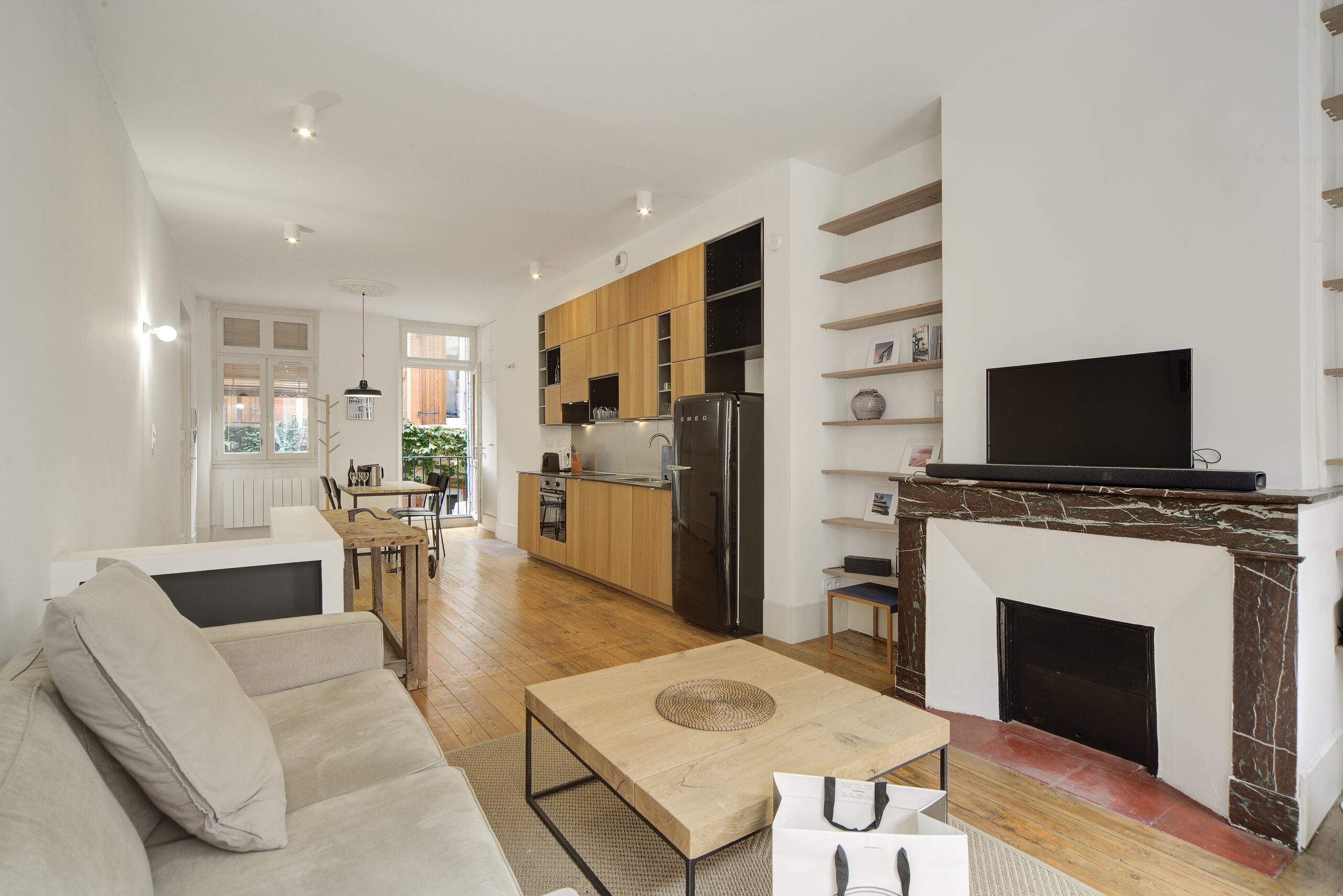 Venez découvrir cet appartement T2 de 50m2 qui se compose comme suit, une grande pièce de vie traversante avec cuisine équipée, petite sortie donnant sur la chartreuse, espace salon et salle à manger.